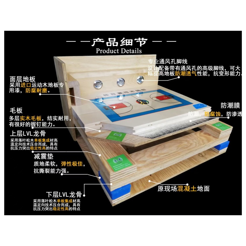 • 運動木地板室內籃球館專用